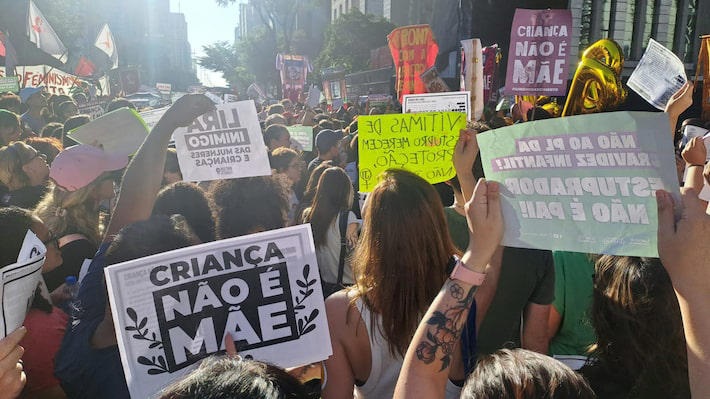 Ato teve como lema “Criança não é mãe” – mas, apesar da adesão, queixa recorrente foi que autoridades não fecharam a via para a manifestação