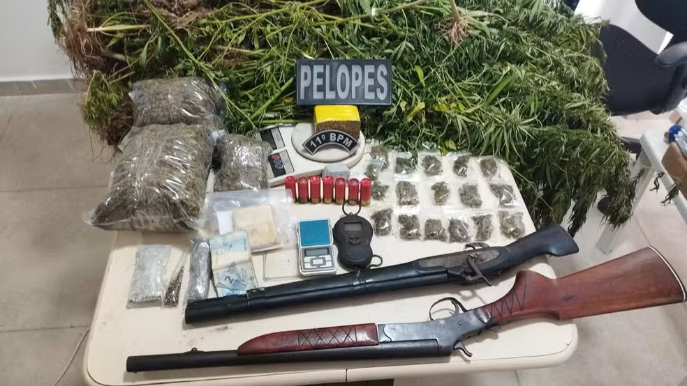 Após denúncias, policiais encontraram plantação com 85 pés de maconha em uma ilha na região, além de armas e munição
