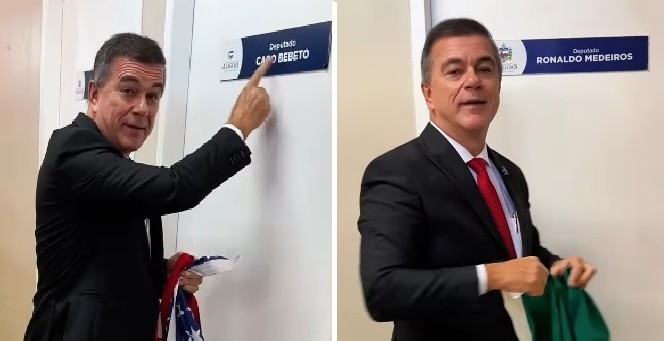 Parte do vídeo postado pelo deputado Ronaldo Medeiros foi gravada à porta do gabinete do colega de plenário – mas, adversário ideológico – Cabo Bebeto