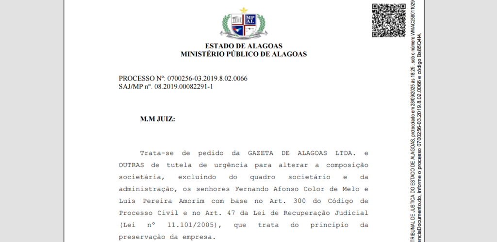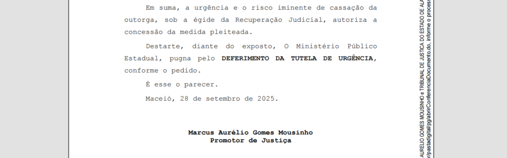 E mais: para que o afastamento seja concedido pelo juiz da 10ª Vara Cível da Comarca de Maceió, Erick Costa de Oliveira Filho, em caráter liminar — de modo praticamente imediato.