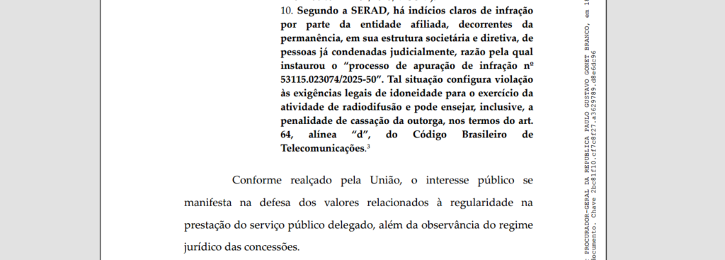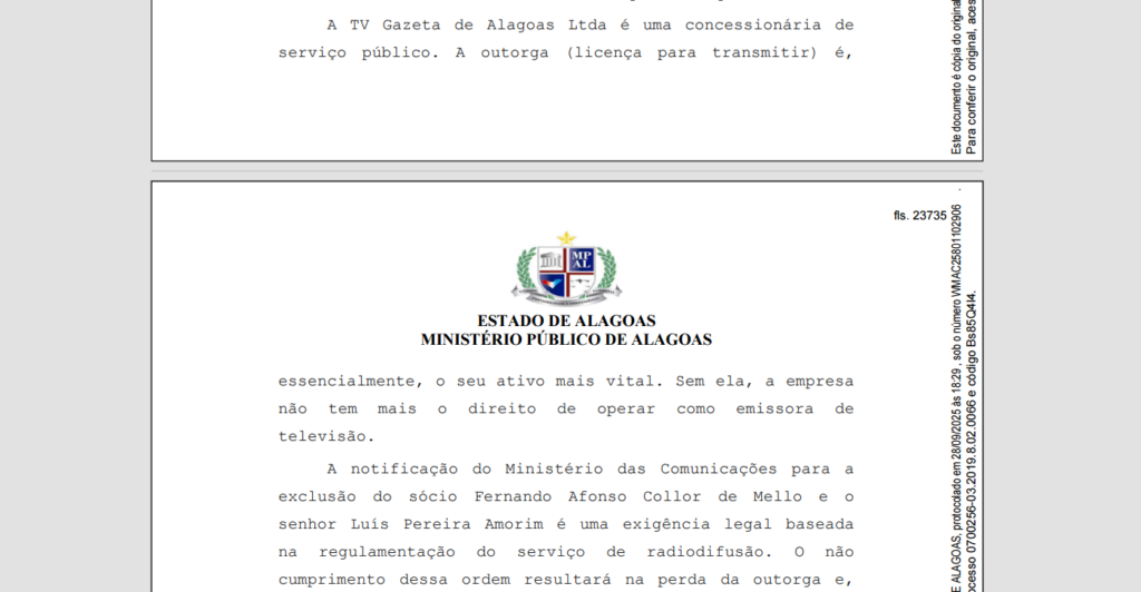O Ministério das Comunicações, por meio da Secretaria de Radiodifusão (SERAD), abriu processo administrativo por causa da permanência de Collor e Amorim à frente das empresas, o que proibido pela Lei de Concessões.